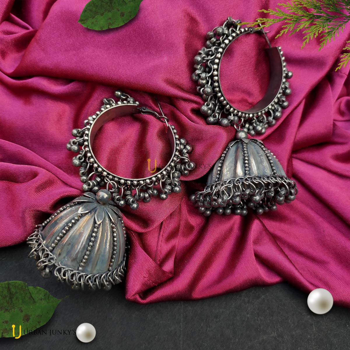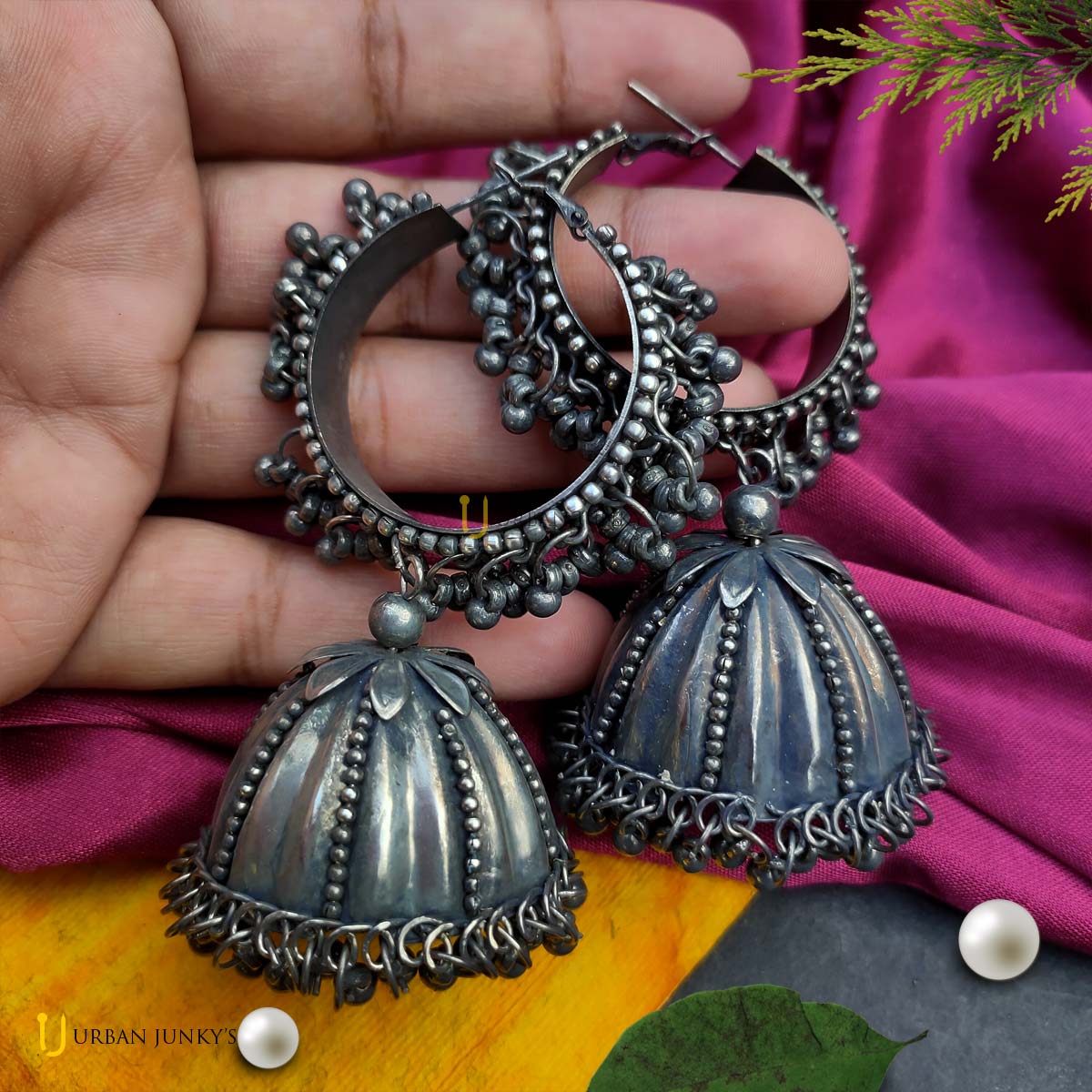 This big jhumka is a black polish earring with ghunghroo balls. It is beautiful and elegant.