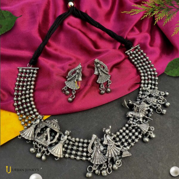 This is one of the most beautiful and trendy jewellery item. It is black polish barati jewellery set. It is created with black polish metal. Comes with matching earrings. One of the best urban jewellery.