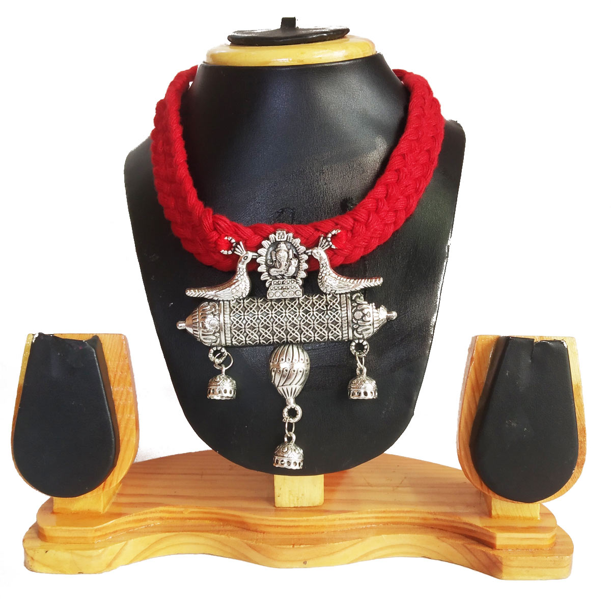 This is a choker with oxidised pendant. The pendant is in silver oxidised and having bird motif.