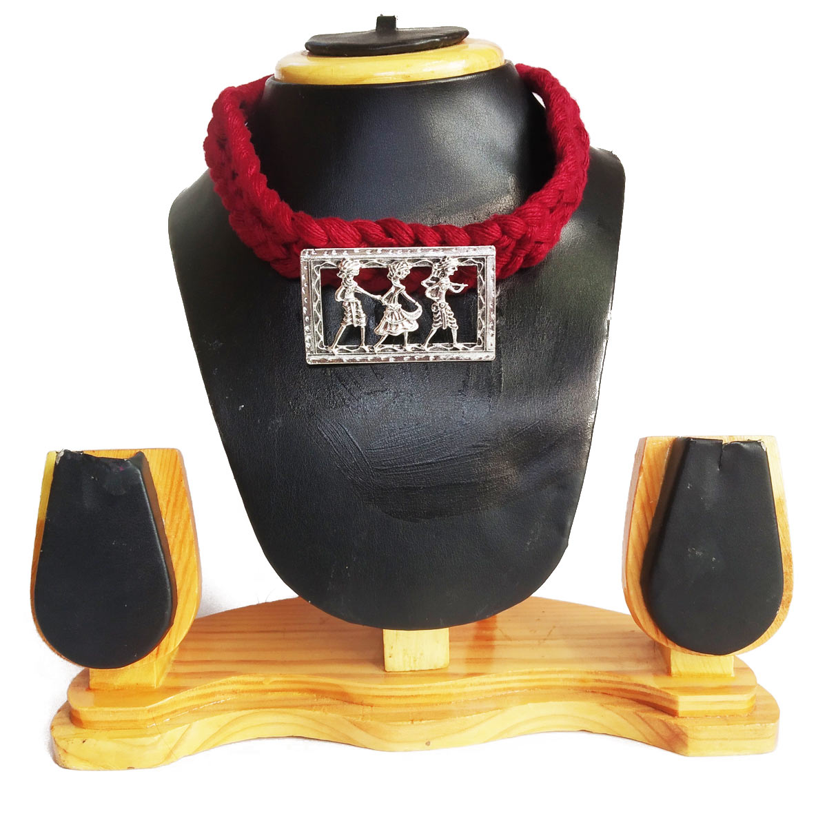This is a cotton beads necklace. It comes with a golden oxidised pendant and looks classy.