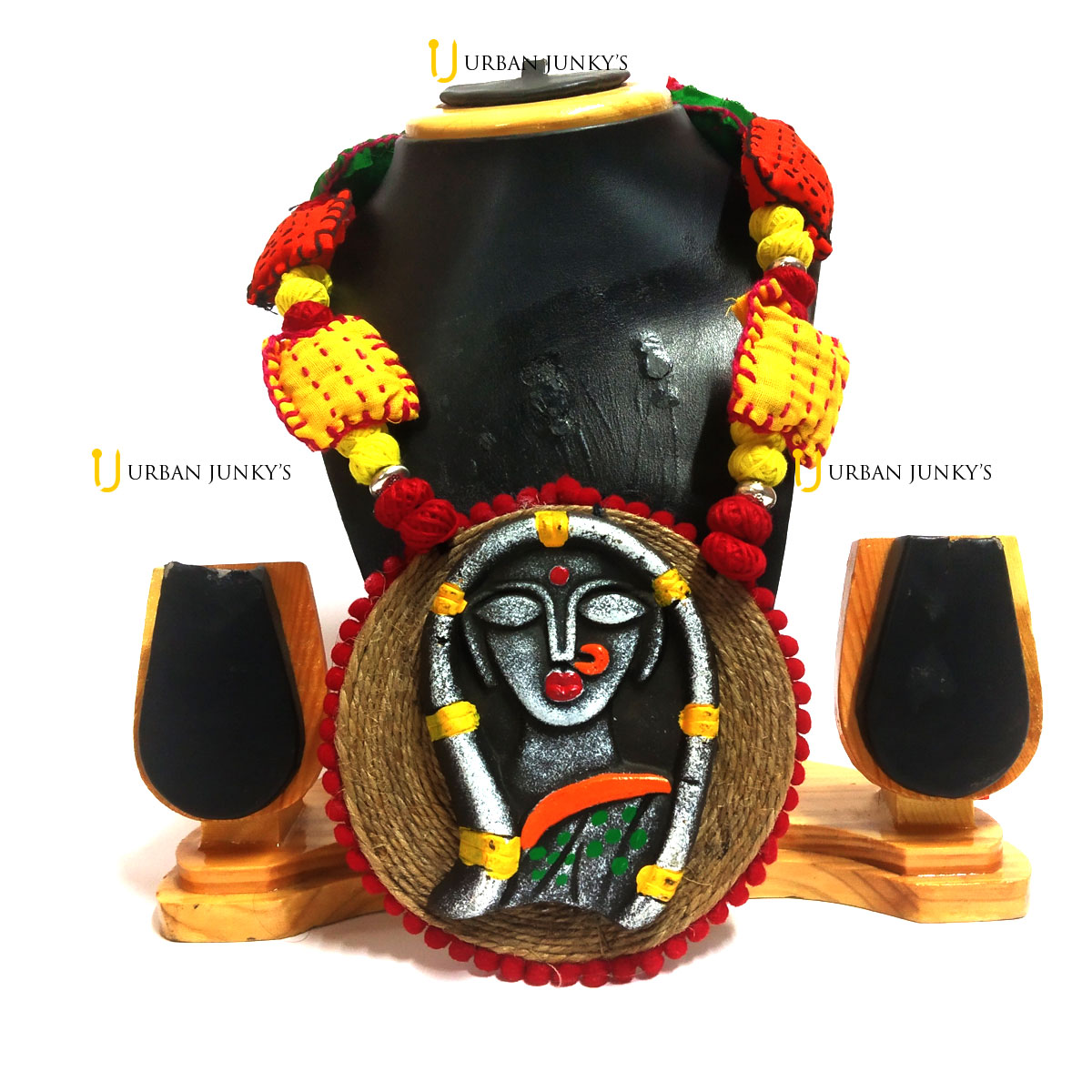 This necklace is handmade. It is crafted with Jute, Clay pendant and cotton beads. It is unique and Indian.