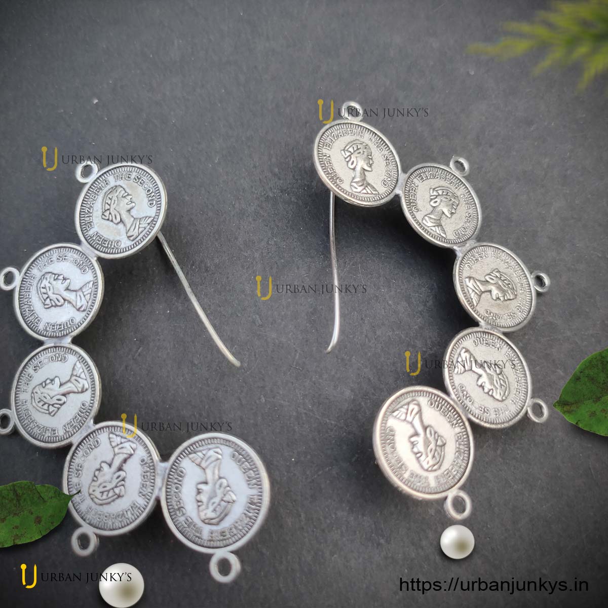 Beautiful German silver bugadi earrings. It is crafted with small coins. Contemporary uncommon jewellery.