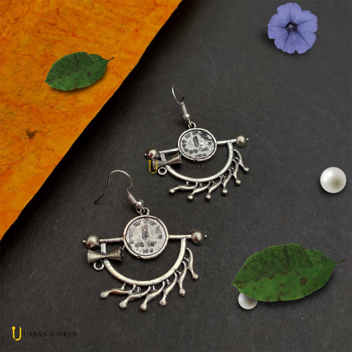 fashion jewelleryGerman silverjewelleryjunk jewelleryleafoxidised jewelleryoxidizedoxidized earringspearl beadsurban junkys
