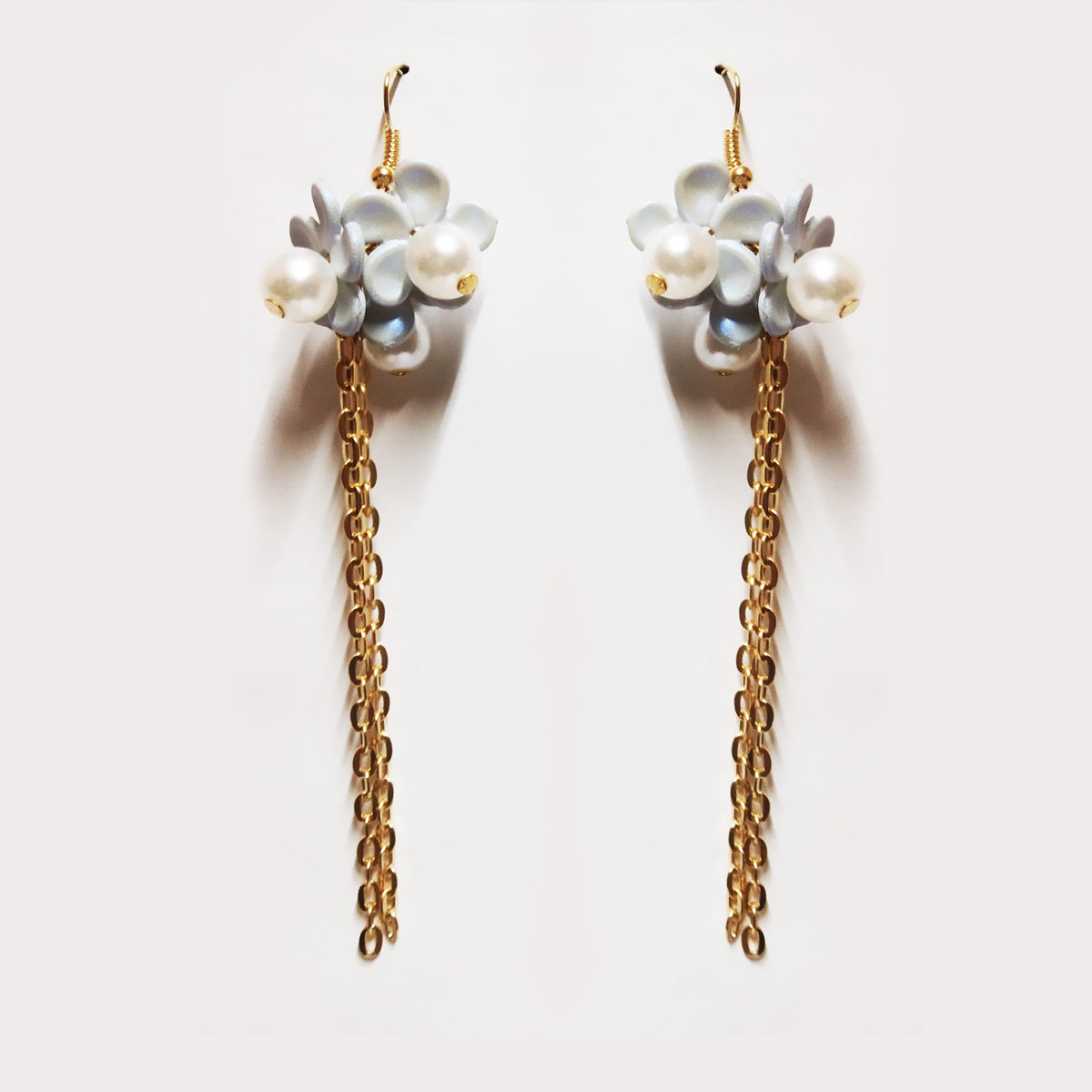 flower pearl chain earrings