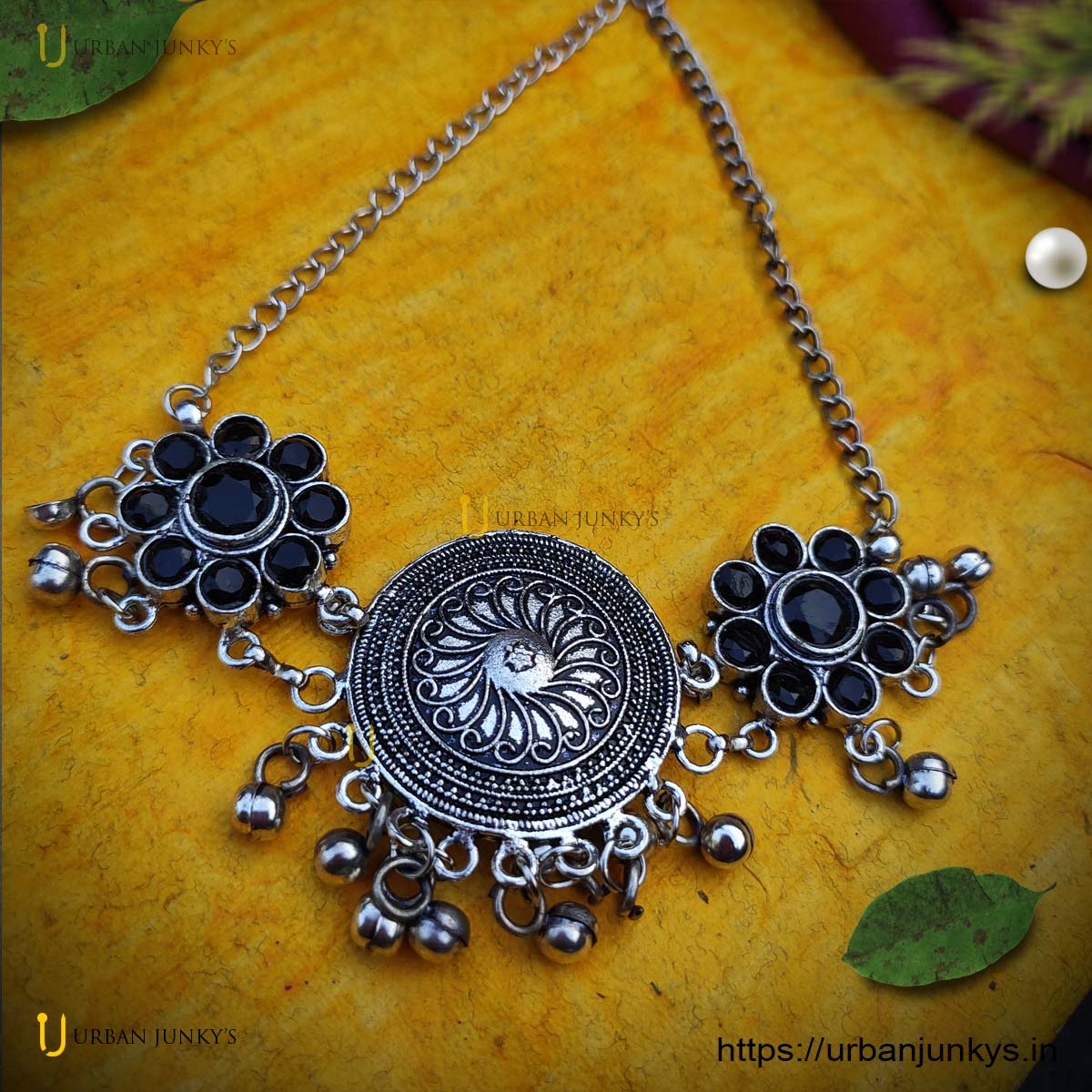 German Silver Choker with Black Stones with flower motifs which can be paired up with any Indo Western dresses.