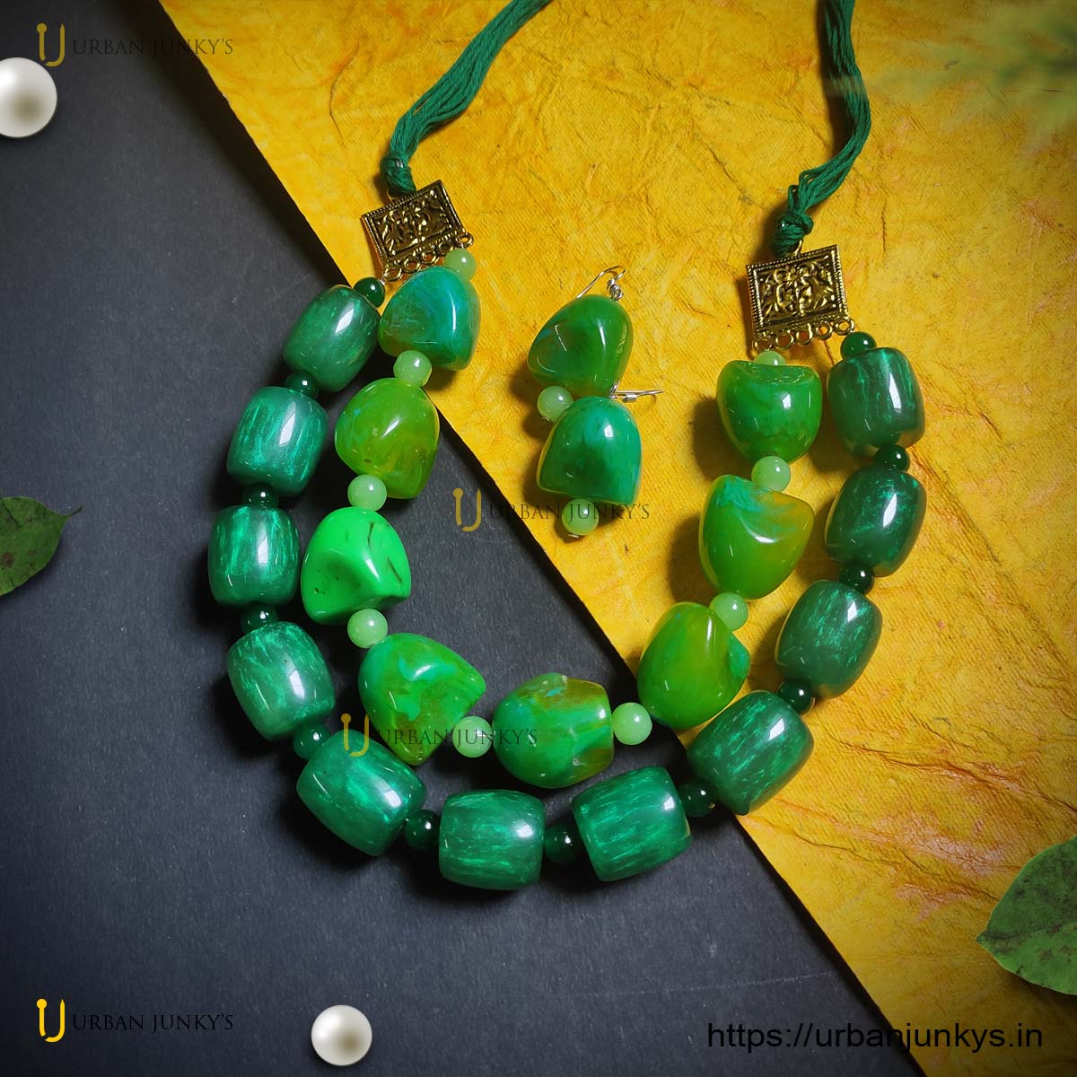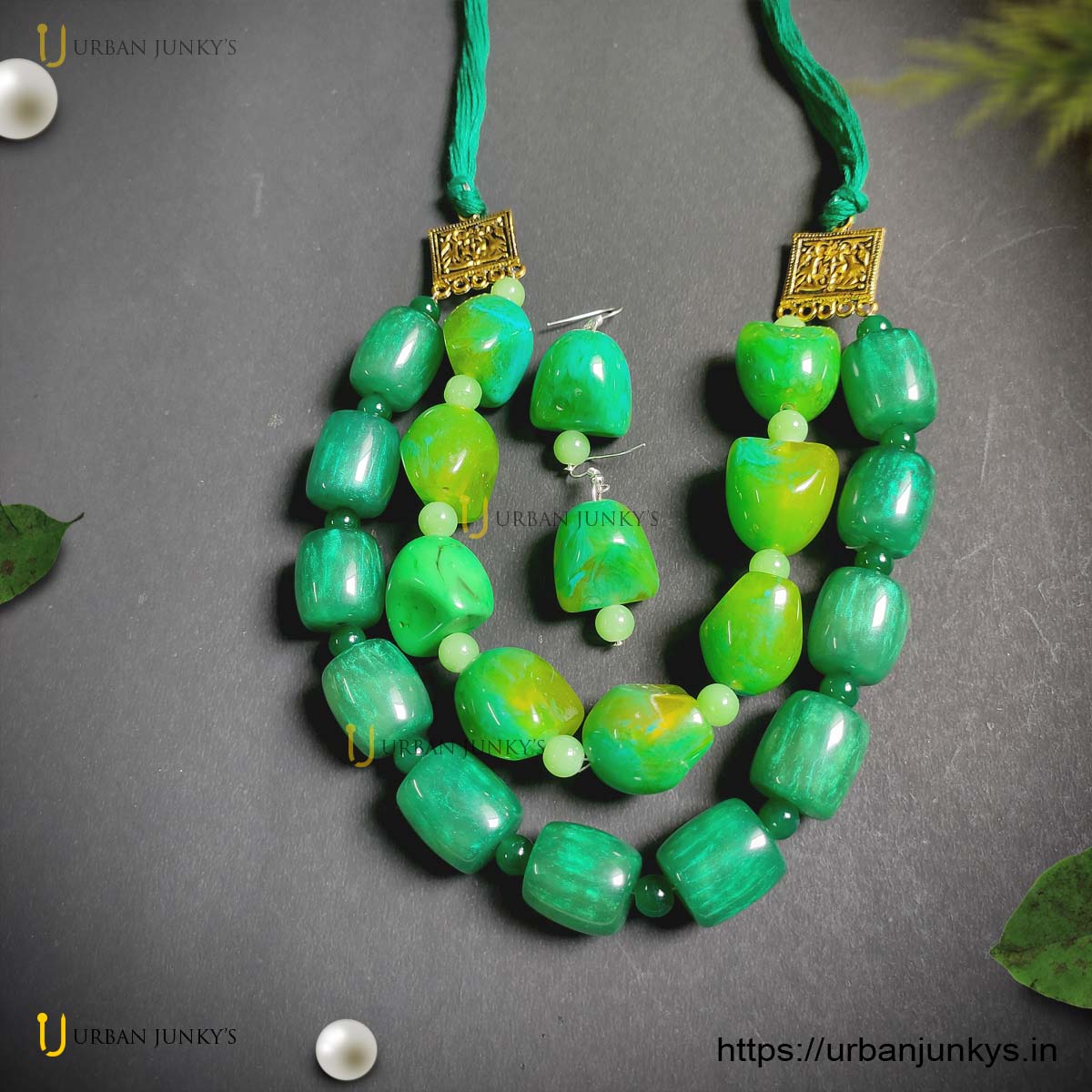 A handmade green shades chemical beads necklace typically refers to a necklace that is crafted using various shades of green chemical beads. Chemical beads are synthetic or man-made beads that are often made from materials like acrylic, resin, or plastic. Handmade jewellery allows for creativity and customization, so a green shades chemical beads necklace could incorporate beads of different sizes, shapes, textures, and shades of green. The beads may be arranged in a particular pattern, interspersed with other types of beads or embellishments, and strung together using a variety of techniques such as wirework, knotting, or stringing. The term “chemical beads” is not a widely recognized industry term, so it’s possible that it refers to a specific type or brand of beads known to the maker or seller. If you have more specific information about the type of beads or the design you’re interested in, I can provide more detailed guidance or suggestions.