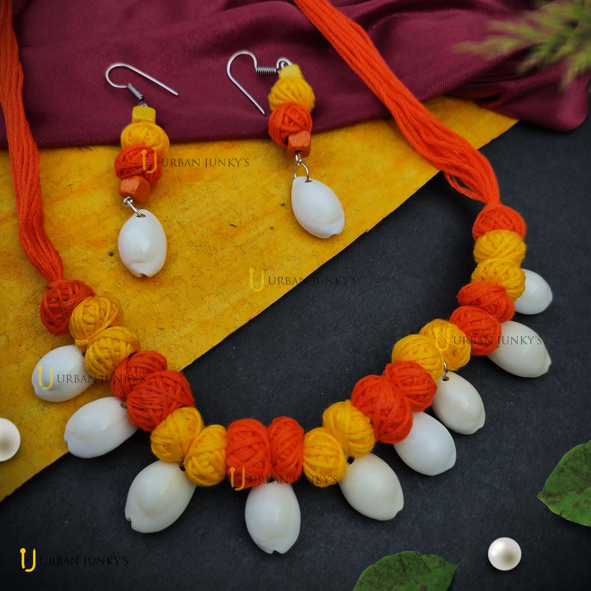 This jewellery is entirely hand crafted. Created with jute balls and threads. Handmade jewellery.