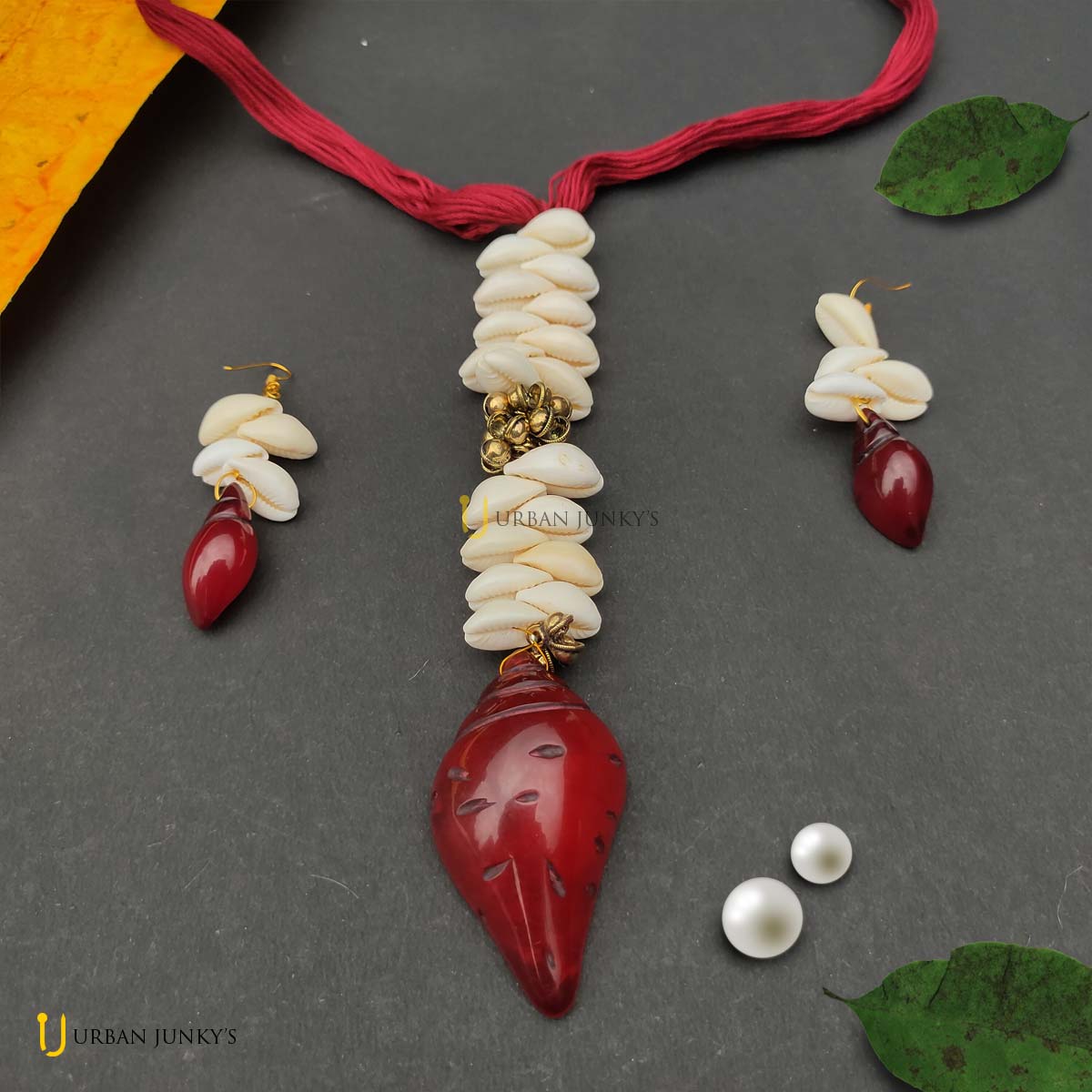 This beautiful ornament is a handmade-shankha-seashell-jewellery set. It is handcrafted.