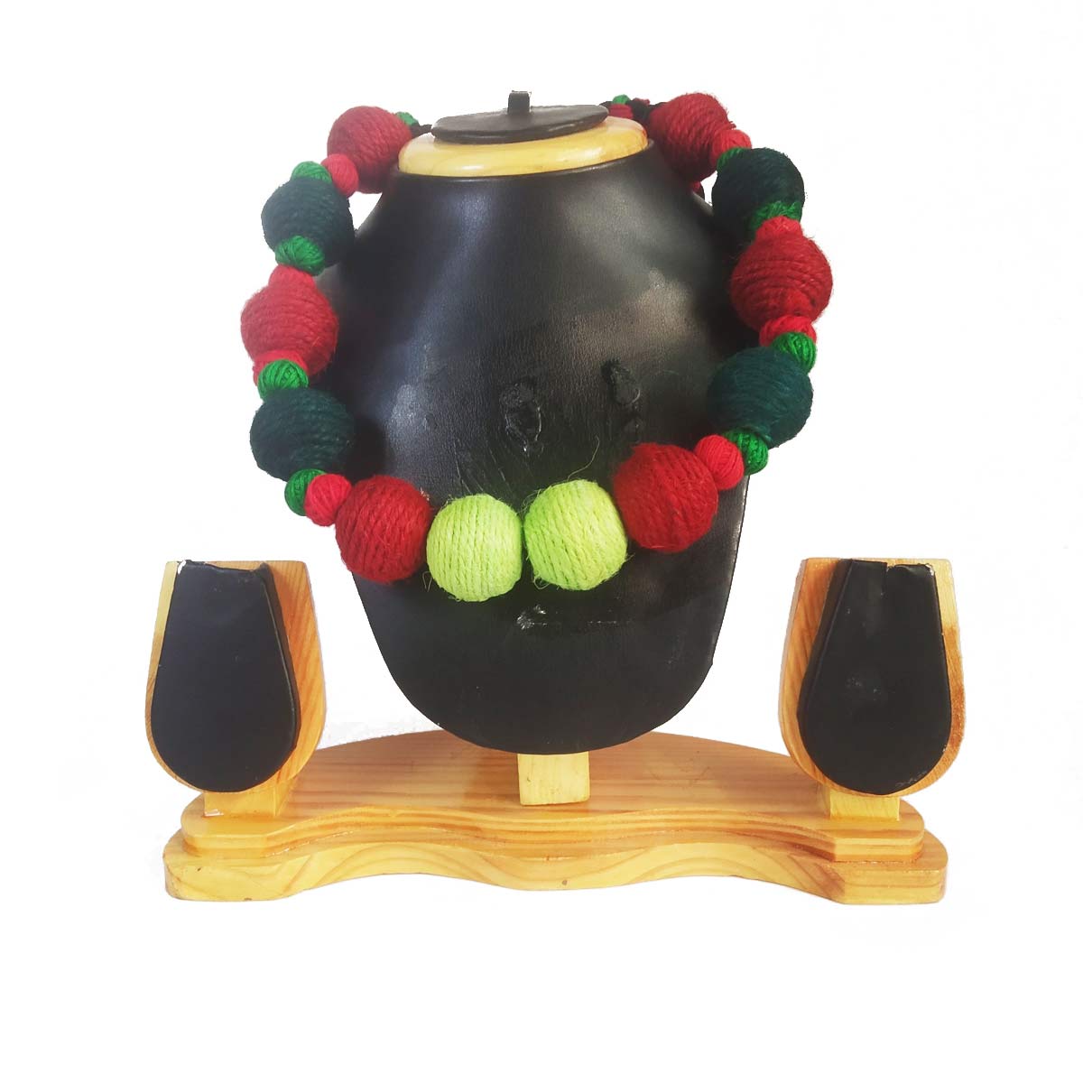 This is a cotton beads necklace. It comes with a golden oxidised pendant and looks classy.
