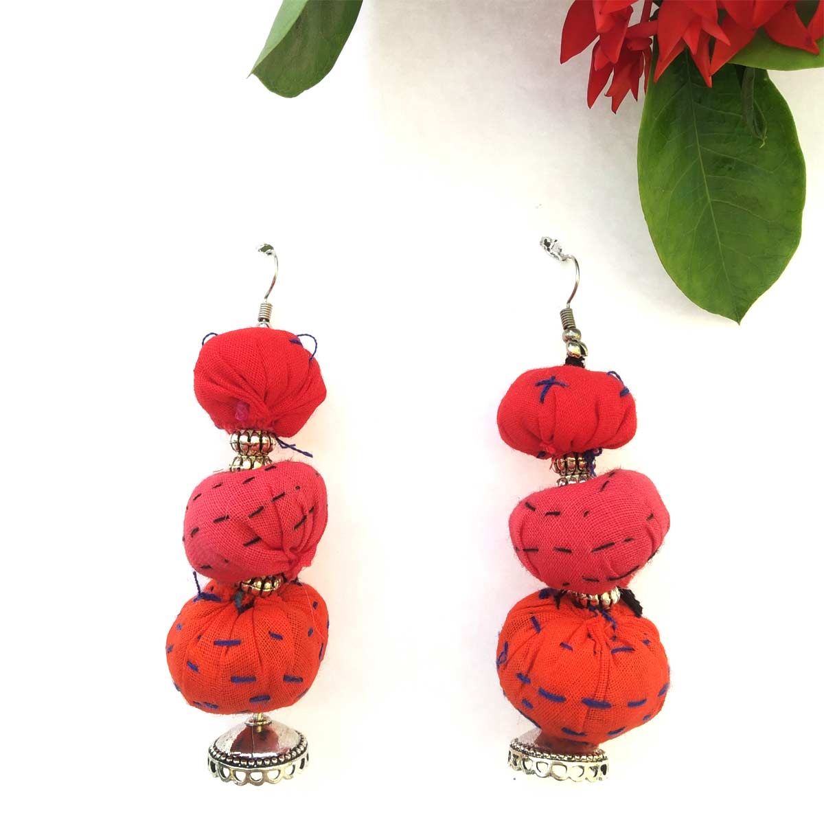 cotton potli earrings. Red in colour light wight jewellery