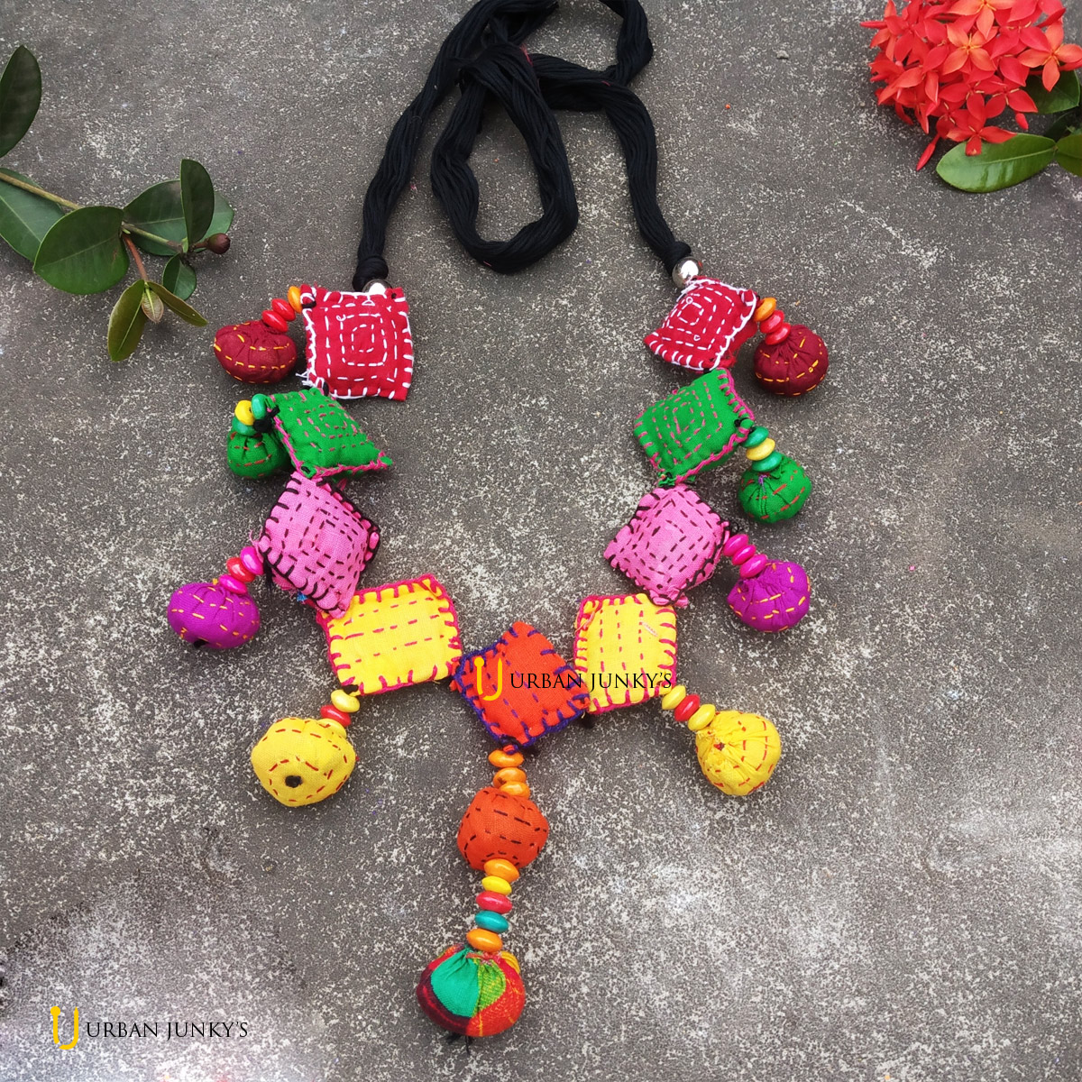 multicolour neckpiece with adjustable tassel can be paired up with all sort of dresses.