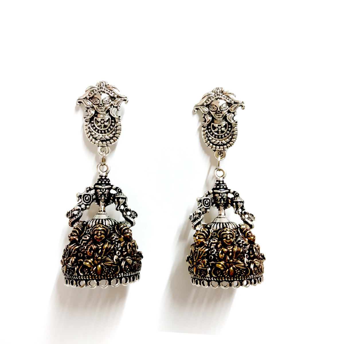 Oxidised dualtone jhumka earrings