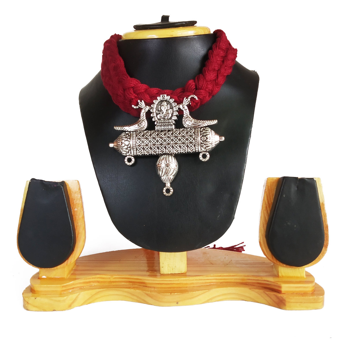 This beautiful jewellery is a hand painted Ganapati necklace. It is yellow in colour, painted of wooden base. It is hand made and beautiful. Perfect for puja and other occasions.