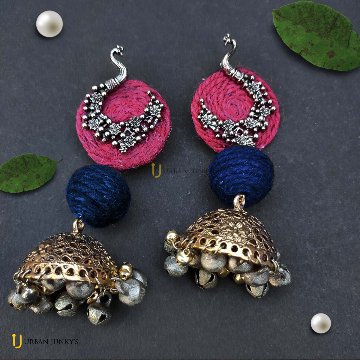 peacock jhumka with jute balls