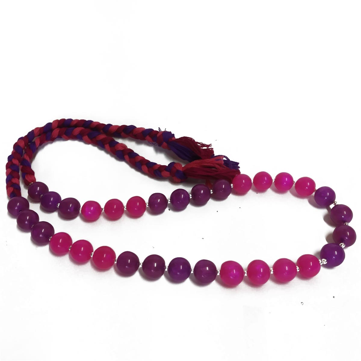 This necklace is created with chemical beads and looks so beautiful. It is pink and purple in colour. Can be used with indo western outfits.