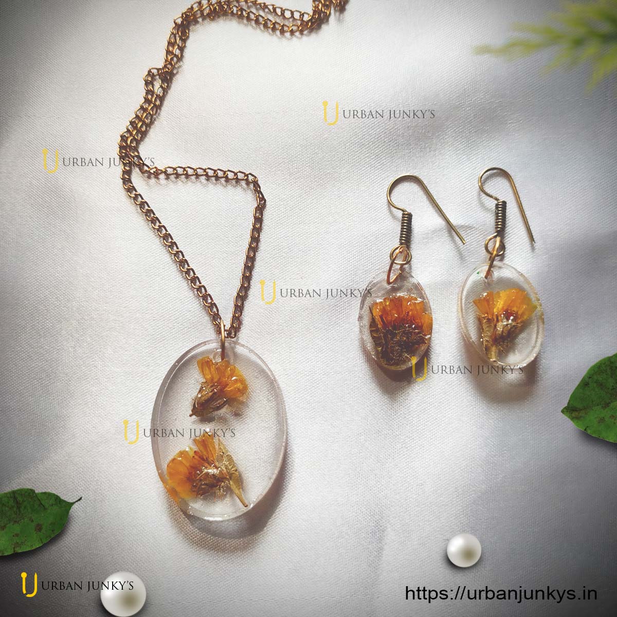 Handmade resin material floral set. Beautiful transparent set crafted with original dry flower.