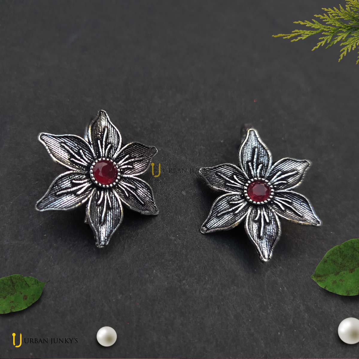 fashion jewelleryGerman silverjewelleryjunk jewelleryleafoxidised jewelleryoxidizedoxidized earringspearl beadsurban junkys