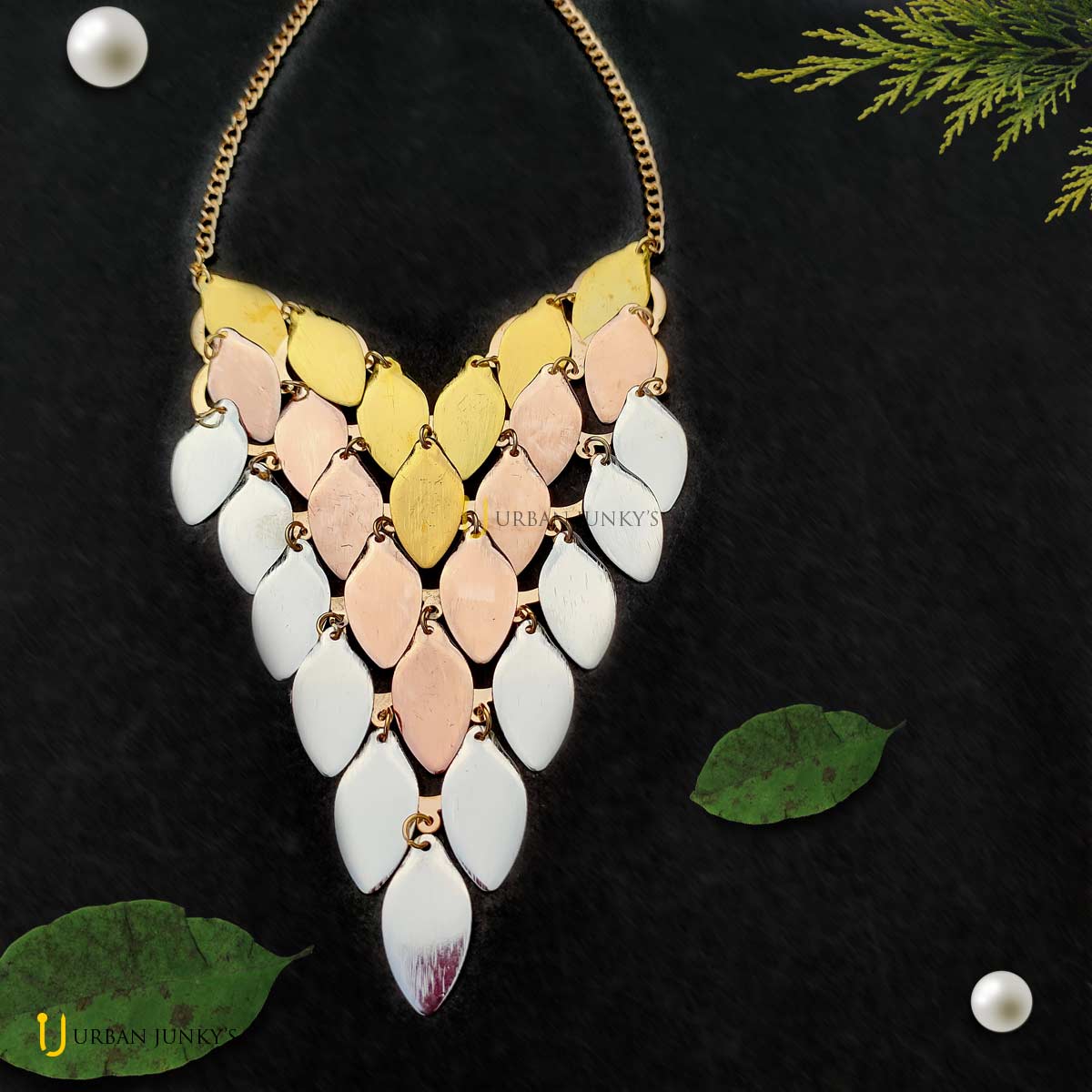 This neckpiece is a big oxidised necklace. It is shaped as leaf. It is very trendy and beautiful.